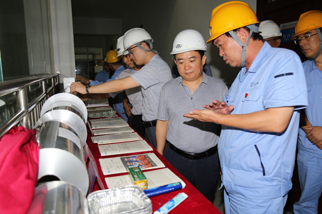 9月5日上午,省科技厅副厅长刘英峰,高新处处长刘晓永、副处长谢田峰一行到万基控股集团万基铝加工公司调研、考察省重大科技专项项目情况。市科技局副局长任庆鹏、副县长王加祥、县科技局局长李辉,集团公司总经理郭峰、总工程师王瑞奇、副总经济师姬延召等陪同。